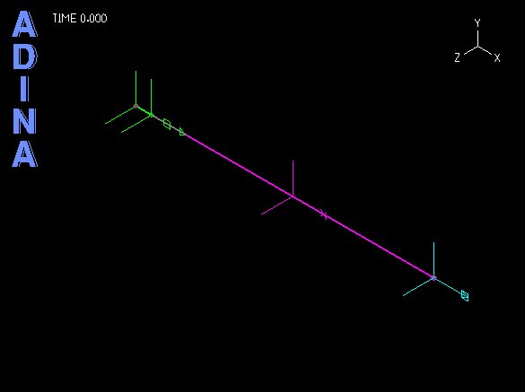 コネクター要素はまた、ユーザーが構造体のローカル座標系(いくつかの方法でユーザーが指定できます)に対 する構造体の剛性行列を直接指定することもできます。コネクタ要素は、空間内を移動するときの向きや位置(コネクタ要素は常に大変位/大回転要素)に対して同じ応答(付属の座標系に対して)を提供します。