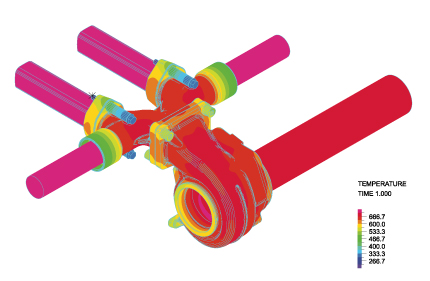排気マニホールドの熱CFDと応力解析
