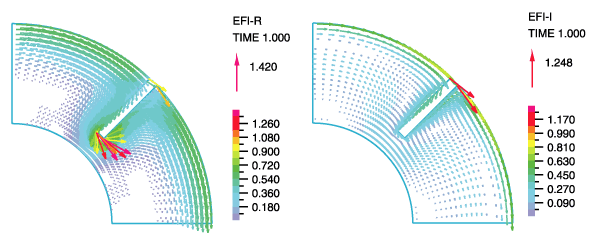 図11、環状内の渦電流:Eのベクトル図;実部(左)と虚部(右)